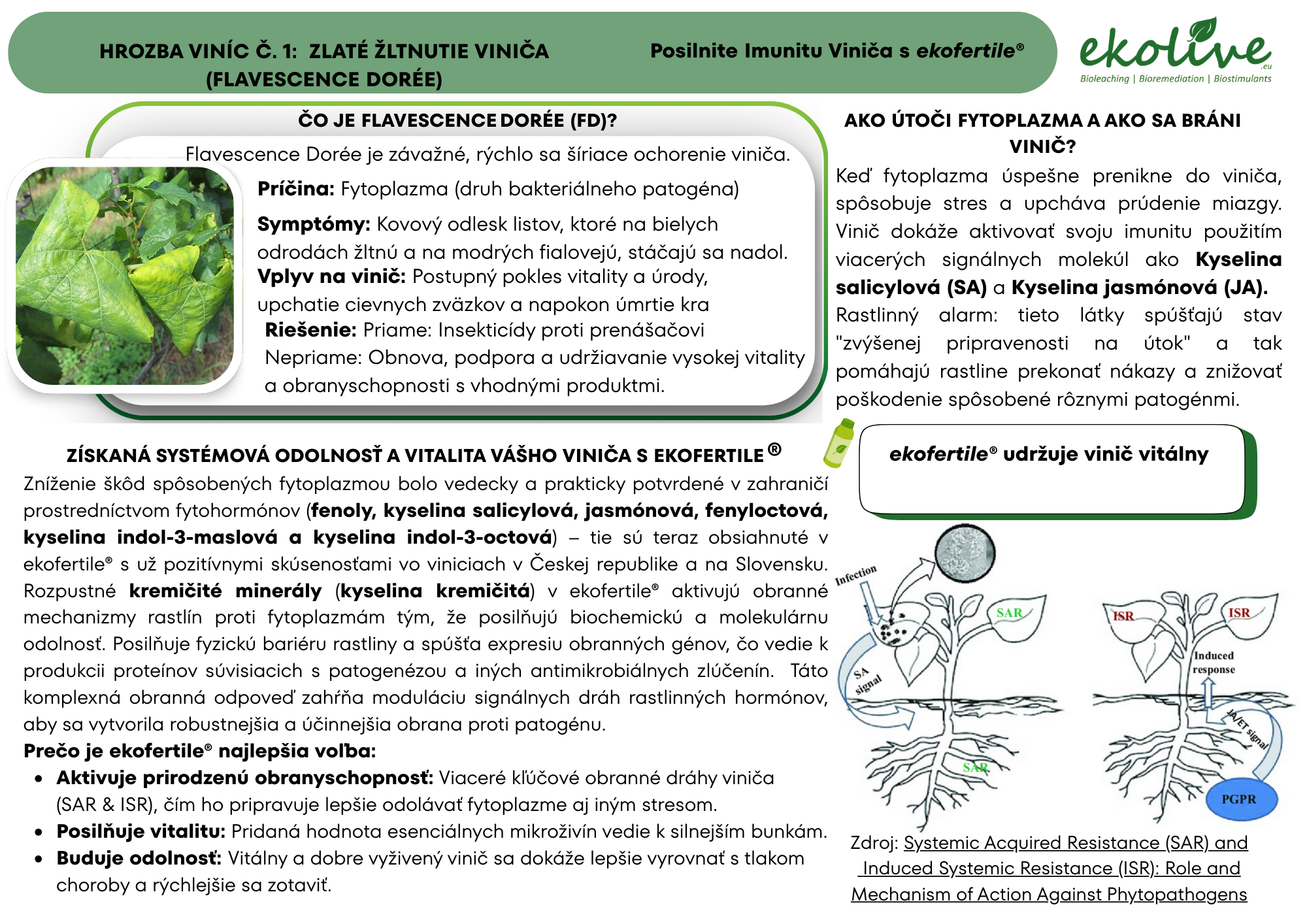 7. Počas vegetačného obdobia aspoň 3 – 4 krát aplikujte fenolické látky a iné biostimulačné zlúčeniny ako napríklad kyselinu salicylovú, auxíny a kyselinu kremičitú, ktoré dokážu zvýšiť obranyschopnosť viniča, napríklad ekofertile®plant a microfertile®plant obsahujú fenoly, kyselinu salicylovú, auxíny aj kremík v prístupnej forme pre vinič.